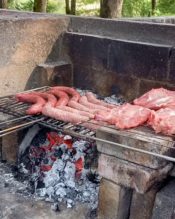 Puis nous avons innové en allumant un feu de barbecue pour cuire saucisses et cotelettes à la base de loisirs de Rumilly.